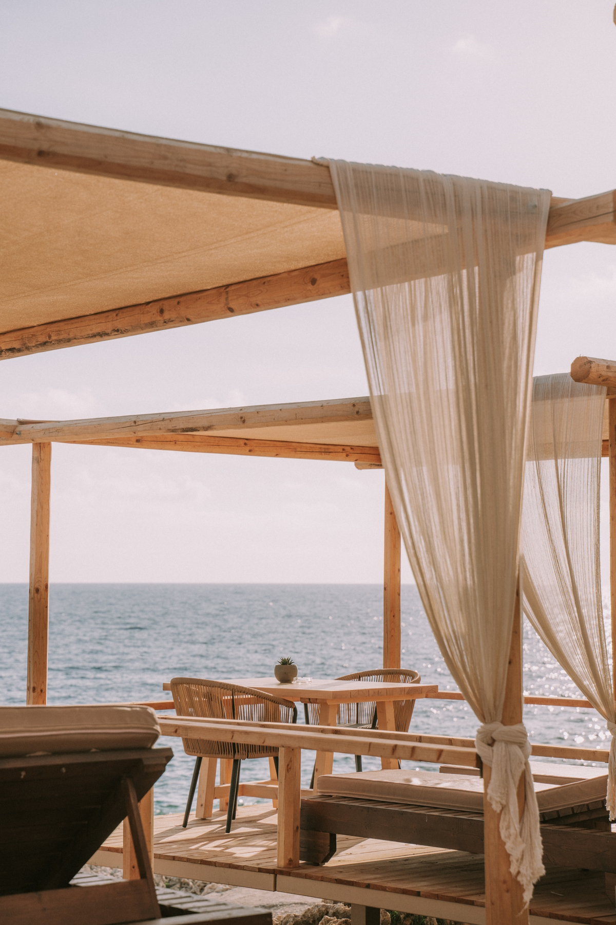 As the day progresses, the magic of Fondo Beach Bar continues to unfold. In the mornings, early risers can enjoy a peaceful swim in the blue waters of Porto Roxa.