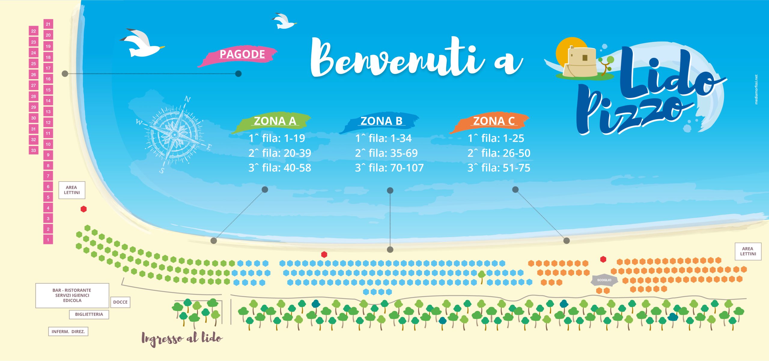 To make your stay at our Paradise in Salento as comfortable as possible, we split our beach in three areas: “Pagoda” one “A”, “B” and “C” ones.