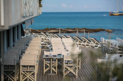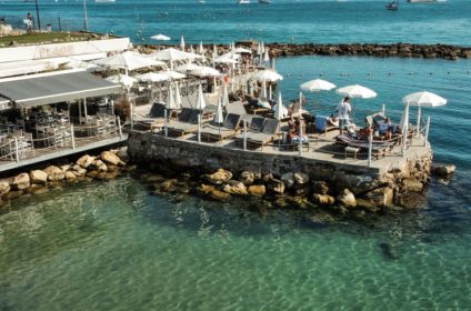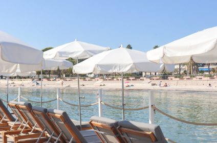 Private beach, pontoon and restaurant by ROYAL Antibes hotel.