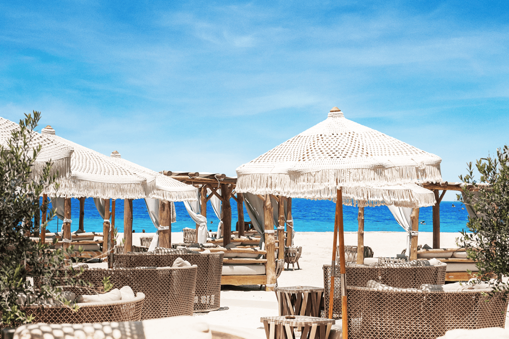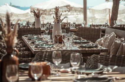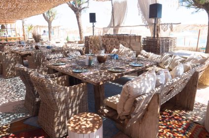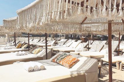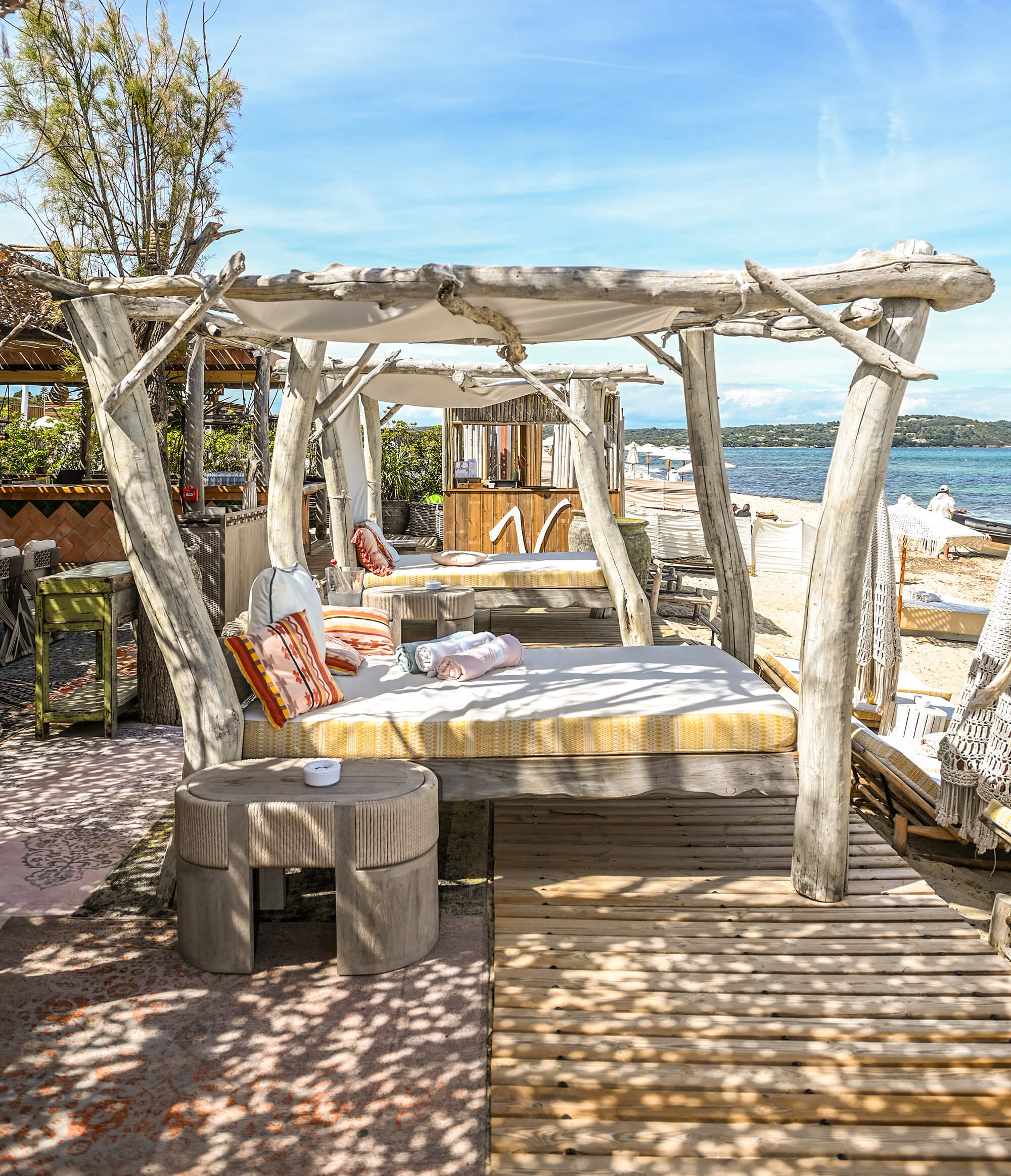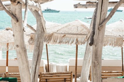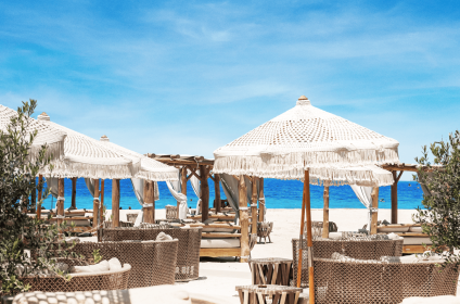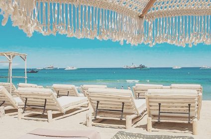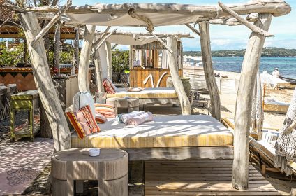 Trendy Pampelonne address with DJ sets and Mediterranean dining